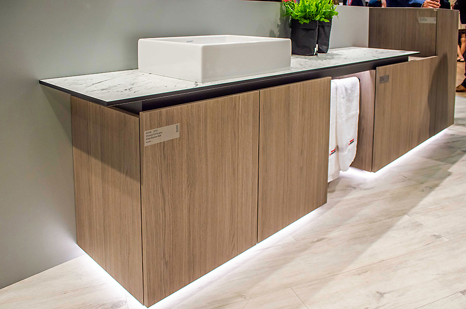Kompaktní deska najde využití jako pracovní deska nejen v kuchyni, ale lze ji umístit i do koupelny nebo jiných vlhkých prostor. Minimalistický design, vysoká odolnost vůči poškrábání a vlhkosti ─ to jsou parametry, díky kterým je právě předurčena pro použití do koupelen, šaten, wellness prostor.