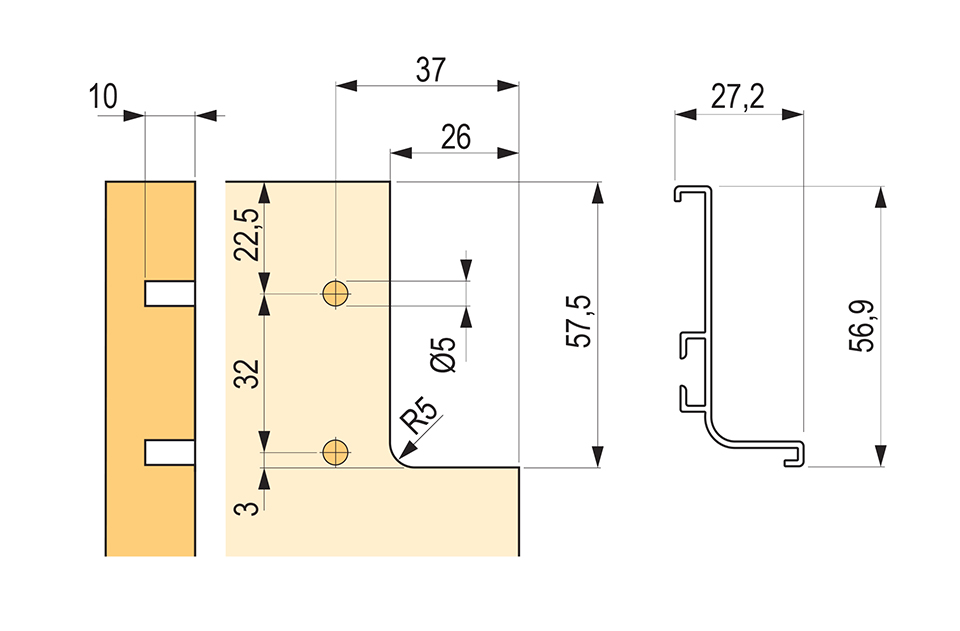 TULIP Gola II dvířkový J profil 2900 imitace nerezi