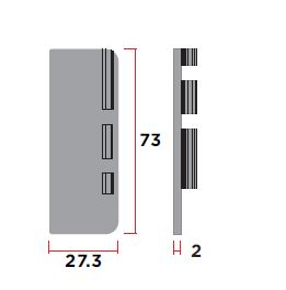 Sada P + L koncovka se používá jen, pokud profil není mezi boky skříňky, rozměr 73,3 x 28,5 mm