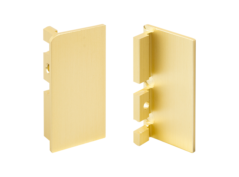 Uzavřená koncovka dvířkového J profilu. Materiál hliník - zlatá. Sada levá + pravá koncovka.
