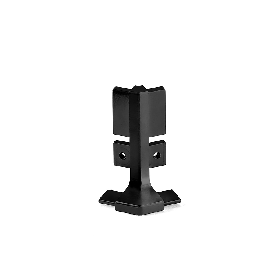 Vnější roh dvířkového J profilu, 90°. Materiál hliník, barva černá.