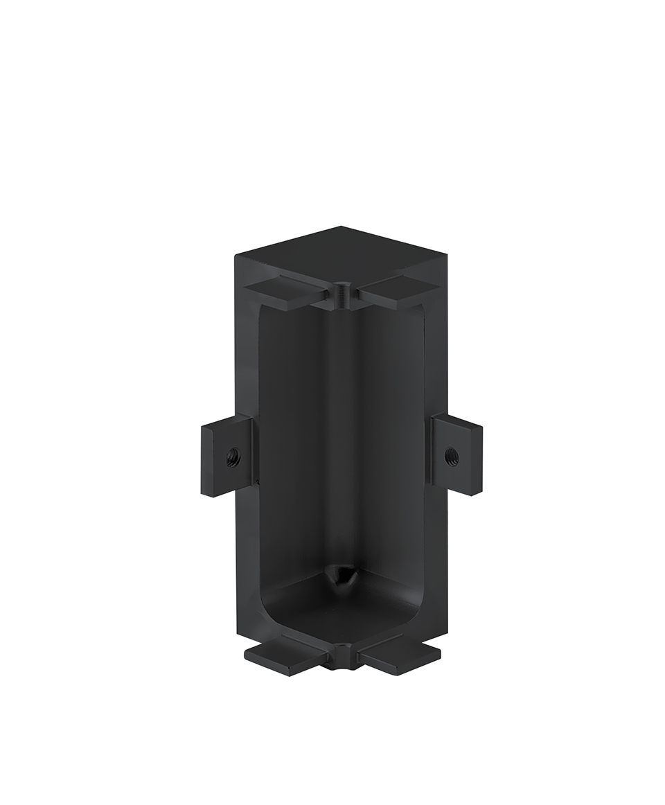 Vnitřní roh 90°pro zásuvkový C profil. Materiál hliník, barva černá.