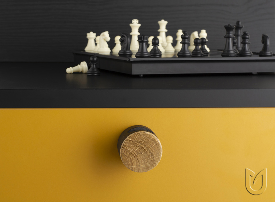 Jednoduchý dřevěný knoflík v kombinaci přírodního dřeva a tmavě mořeného dřeva - klasika, která si najde místo na komodách, skříních a zásuvkách. Knoflík krásně doplní spojení přírodního dřeva v kombinaci s černými povrchy.