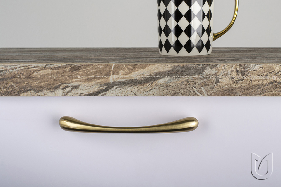 Kombinace úchytky a knopky Kink je vhodná jak na kuchyňské linky, tak i na ložnice, předsíně, či obyvákove sestavy.