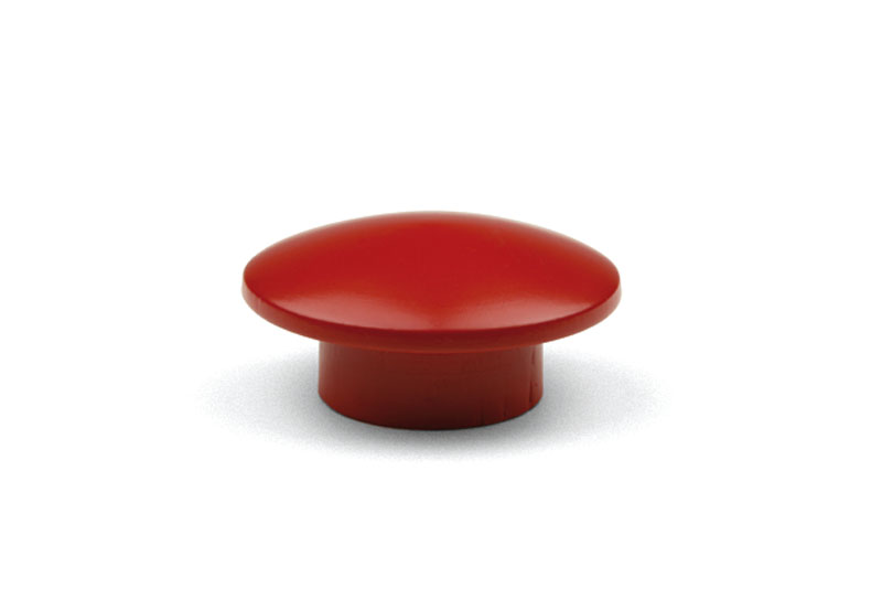 Knopka průměr: spodní část 31,5mm / vrchní část 57 mm. Výška: 27,5 mm, povrch: červená, použity ekologické laky s atestem