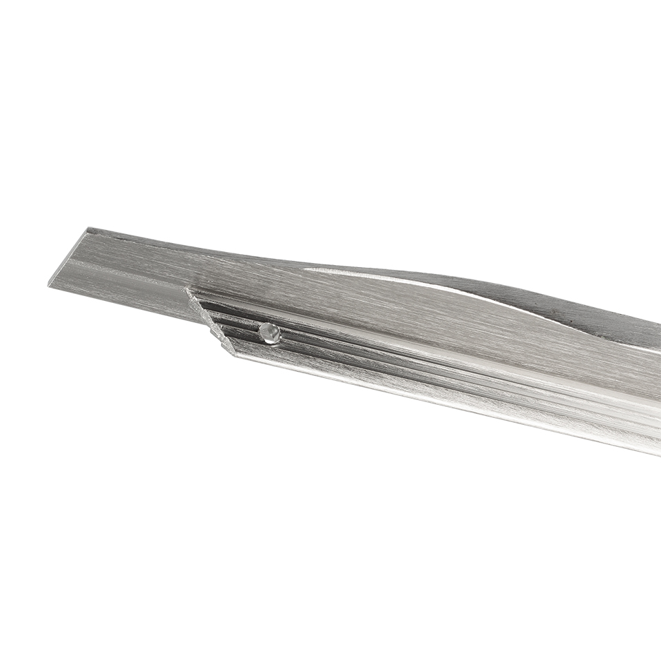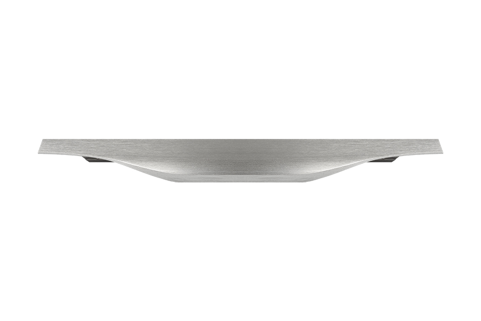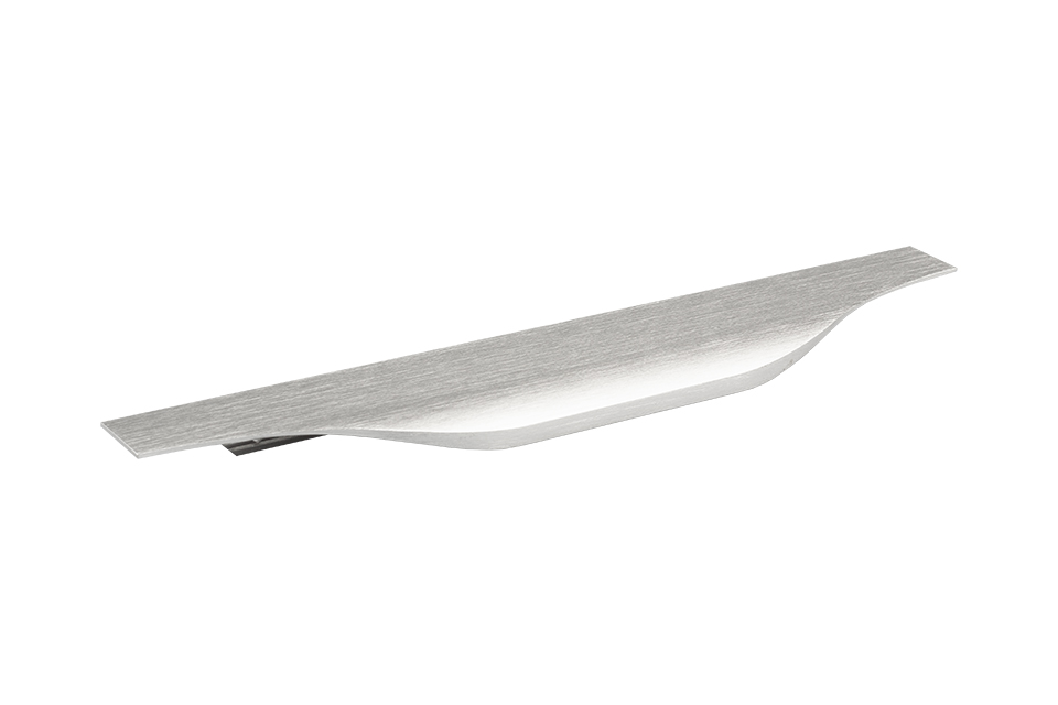 Narážecí úchytový profil. Úchytka z materiálu hliník, povrchová úprava imitace nerezi světlá, kombinovat pouze s touto povrchovou úpravou. Šířka 20 mm. Tloušťka 1,5 mm. Rozměr drážky pro frézování: 3mm