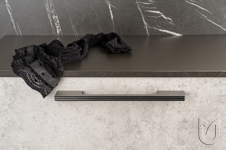 úchytka rozteč: 384 mm, celková délka: 464 mm, šířka: 10mm, výška: 30 mm, povrch: broušený nerez, sendvičový materál HPL, neobsahuje šroubky