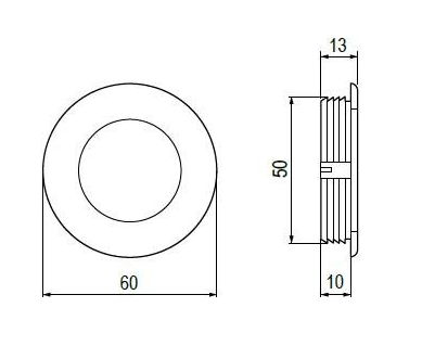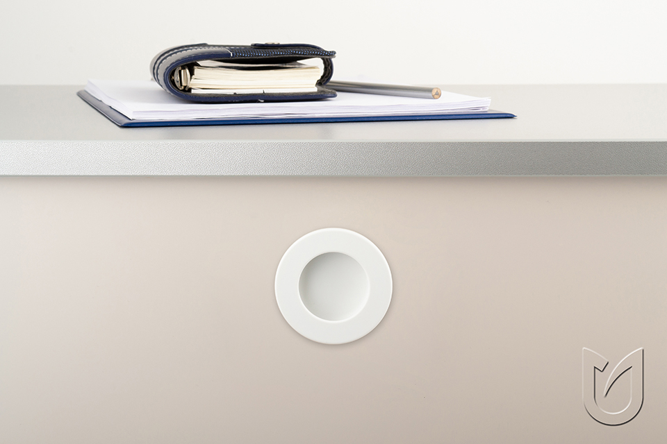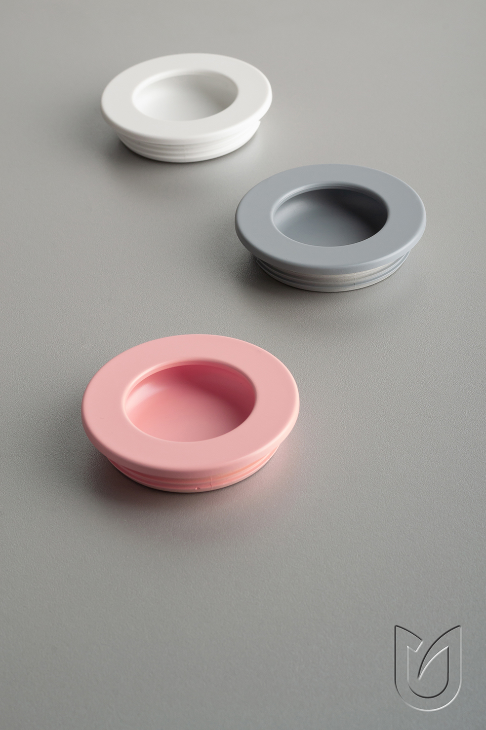 Plastová zápustná úchytka o průměru d60mm. Montáž do otvoru d50mm.