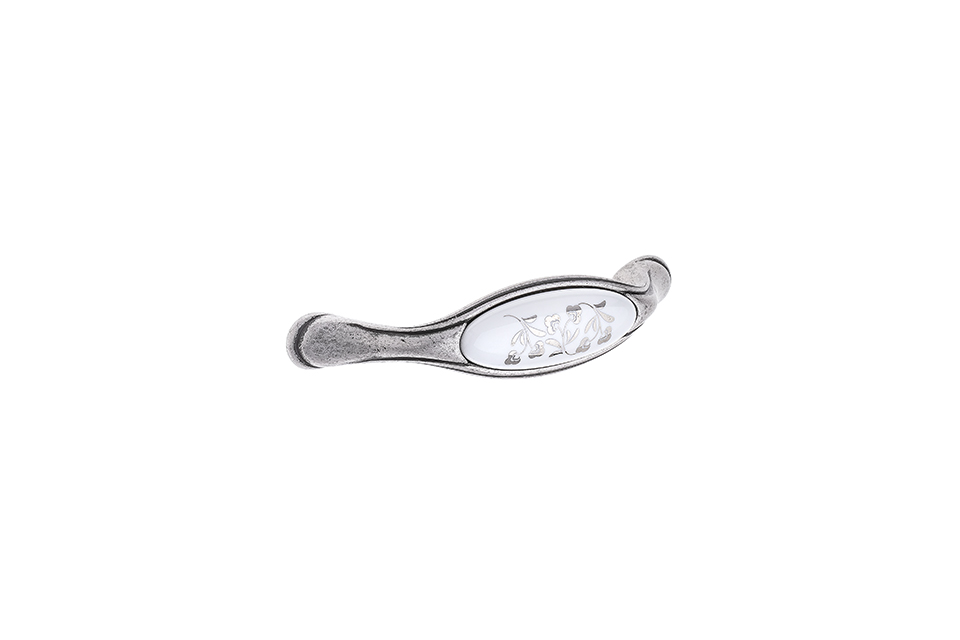 úchytka povrchová úprava starostříbro/ porcelán bílý/květinka stříbrná, rozteč 96 mm, délka 127 mm, šířka 26 mm, výška 36 mm. šroubky nejsou součástí balení. Skladem v 33. týdnu