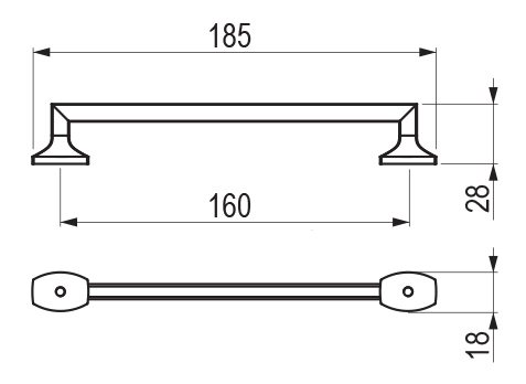 Kovová úchytka s roztečí 160mm, v celkové délce 185mm.