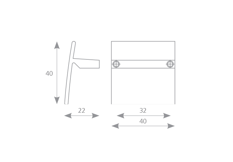 Rozteč 32 mm,výška 22mm,délka/šířka 44/40.Šroubky nejsou součástí!Nutno dokoupit.