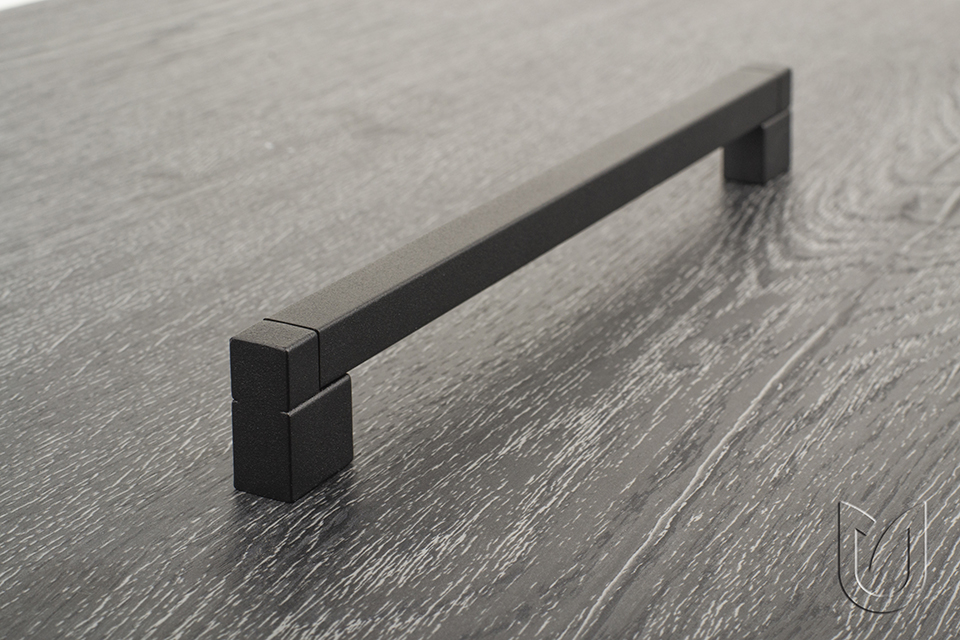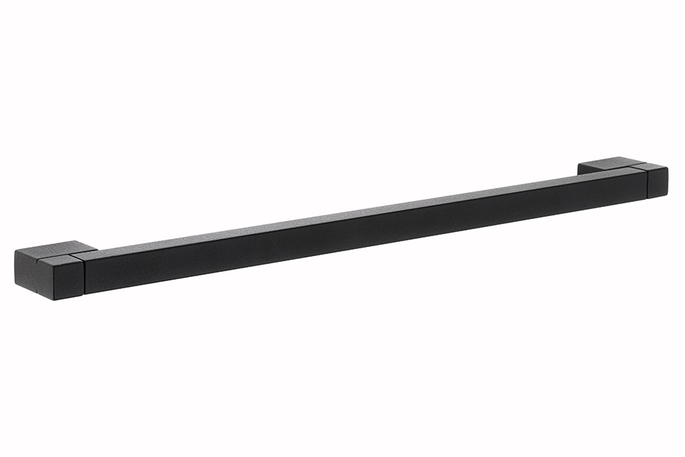 Kovová úchytka černá matná. Délka: 472 mm, Rozteč: 448 mm, Šířka: 12mm, Výška: 30mm.