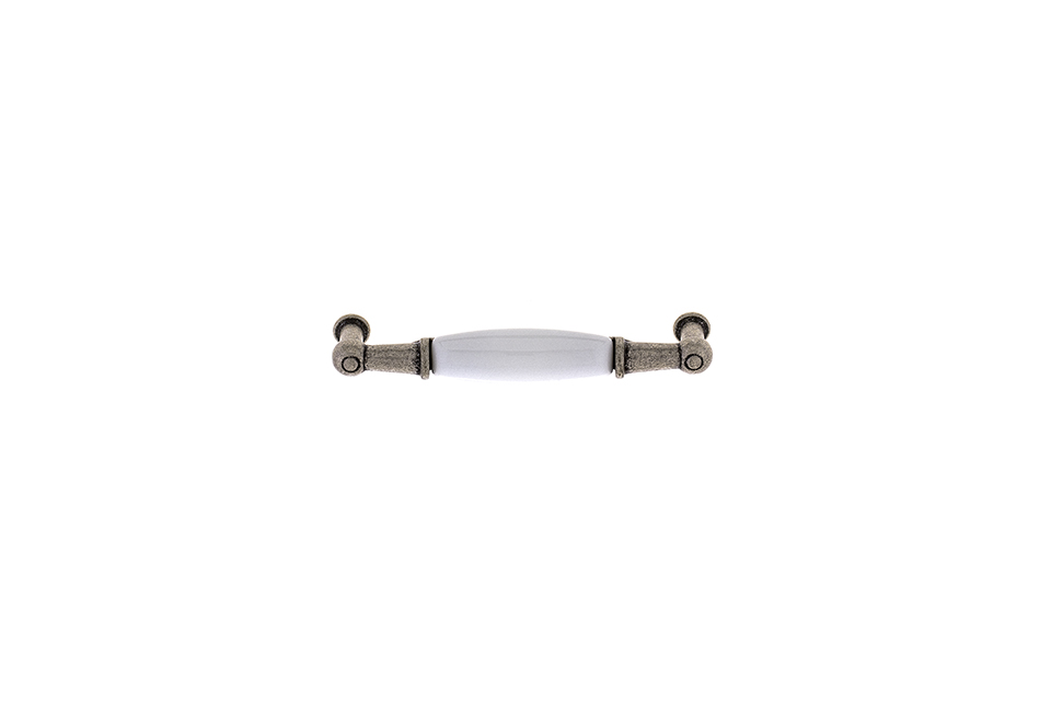 úchytka rozteč 96 mm, délka 107, šířka 18 mm, výška 27 mm, povrch starostříbro/porcelán bílý. šroubky nejsou součástí balení
