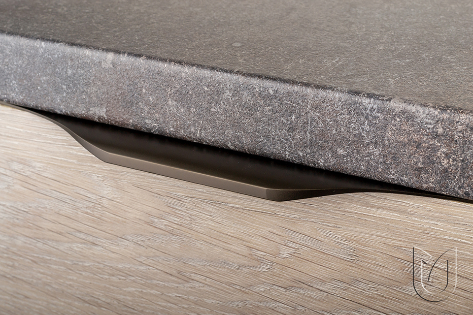 Narážecí úchytový profil. Úchytka z materiálu hliník, povrchová úprava imitace nerezi světlá, kombinovat pouze s touto povrchovou úpravou. Šířka - na dvířko 18 mm. Tloušťka 1,5 mm. Rozměr drážky pro frézování: 3mm