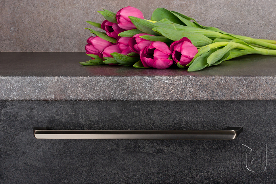 Povrchová úprava : nikl tmavý broušený, celková délka 180mm, rozteč vrtání 160 mm, šířka 15 mm, výška 26 mm