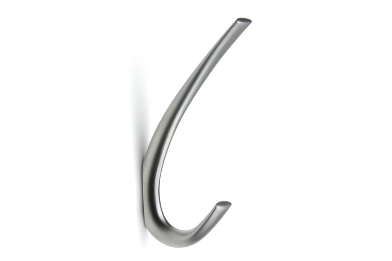 věšák šířka 15 mm, výška 120, délka 70 mm, povrch satin chrom. Montáž zezadu na jeden šroub. Nutno předvrtat otvory o průměru 8 mm, hloubka 8mm. Rozteč vrtání 22mm.