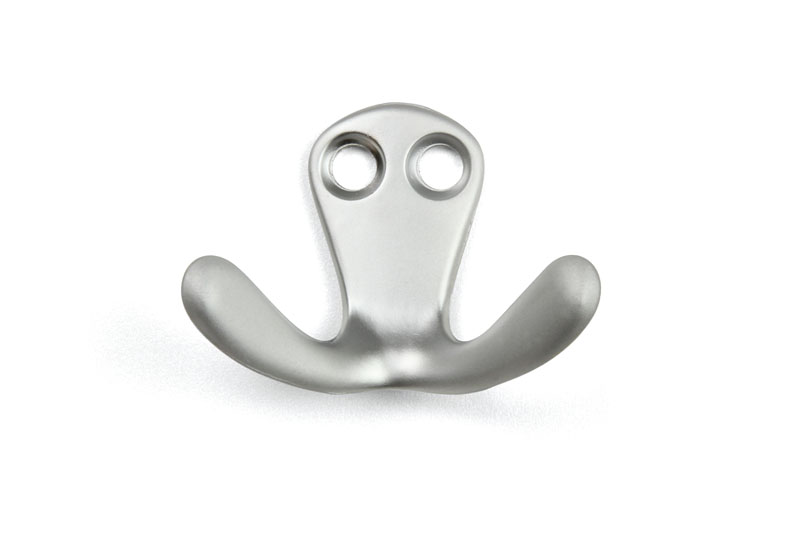 věšák šířka 41 mm, výška 33, délka 32 mm, povrch satin chrom. Rozteč vrtání 10 mm, přední montáž.
