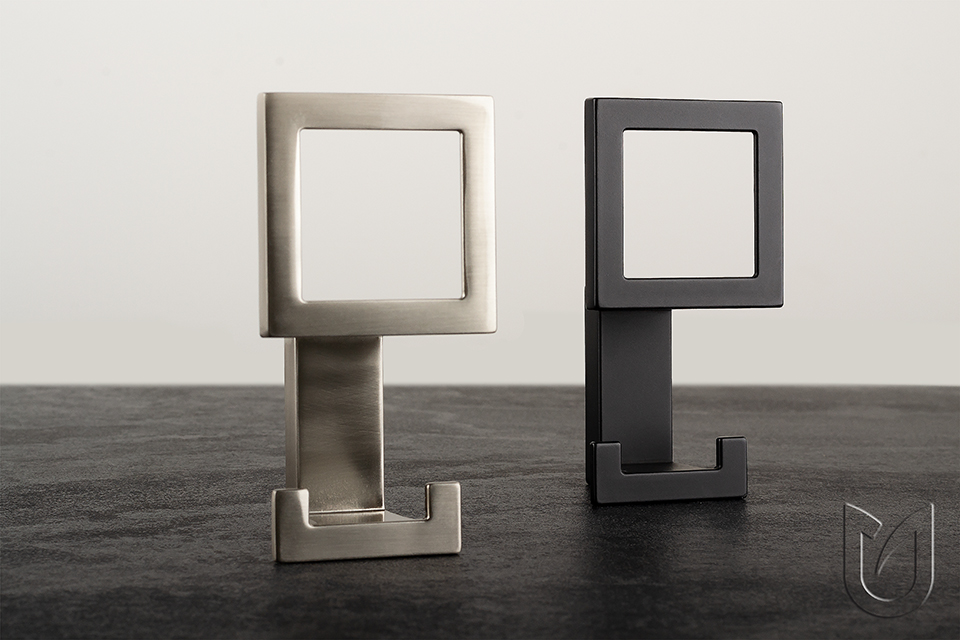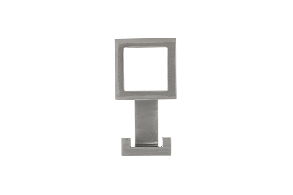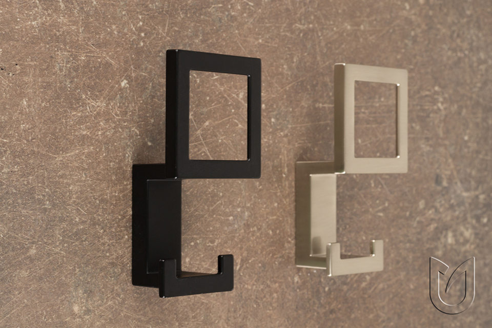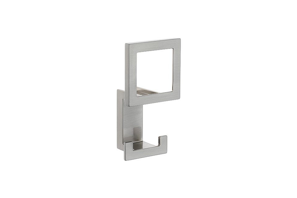 Kovový věšák Výška: 101 mm, Šířka: 52 mm, Povrch: nikl broušený // Hranatý věšák Marell v provedení černá matná a broušený nikl splní praktickou i estetickou funkci v každém interiéru. Praktická horní, hranatá část poslouží na zavěšení kabátů nebo klobouků. Pro zavěšení oblečení, které má klasické ouško se hodí dva menší háčky. Design věšáku je velmi jednoduchý, moderní a nadčasový.