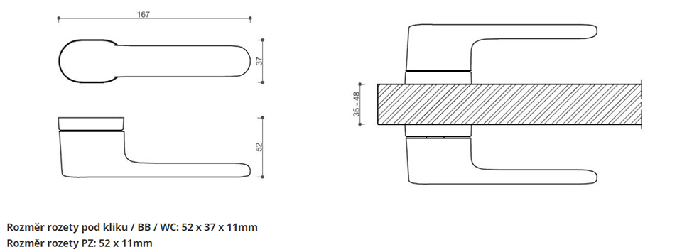 Rozměr rozety pod kliku / BB / WC: 52 x 37 x 11mm Rozměr rozety PZ: 52 x 11mm