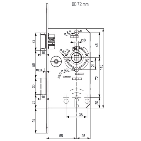 TWIN Zámek zadlabací pravý plastová střelka závora BB/72mm | Démos trade, a.s.