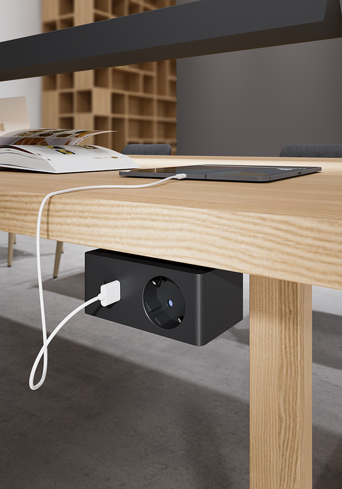 Díky minimalistickému designu se VersaQ snadno integruje do široké škály prostředí, jako jsou kanceláře, pracovní stoly, home office, nebo hotely.