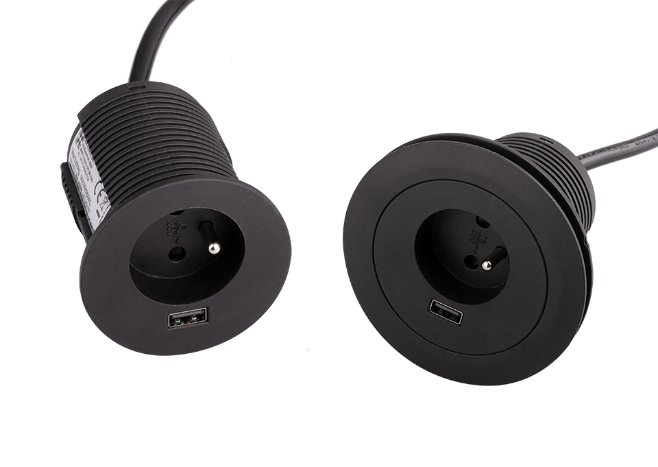 VersaTag elektrická zásuvka 1x 230V Francouzská, 1x USB A, černá