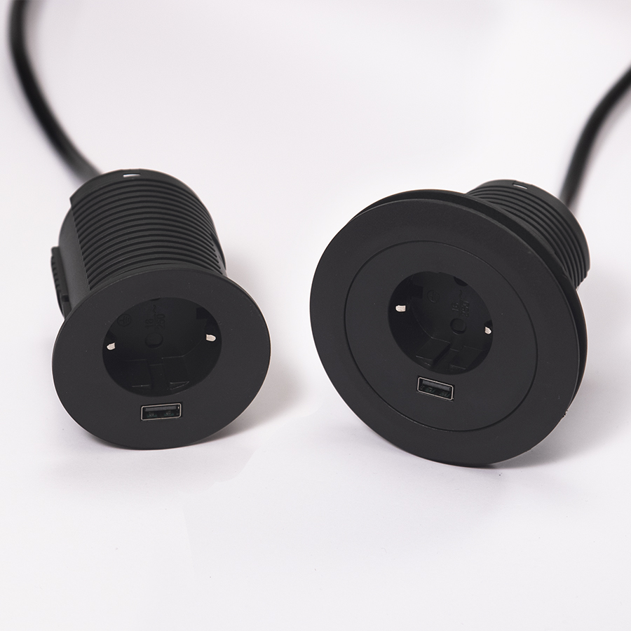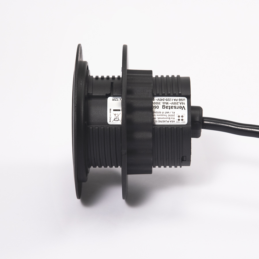 VersaTag elektrická zásuvka 1x 230V Schuko, 1x USB A, černá