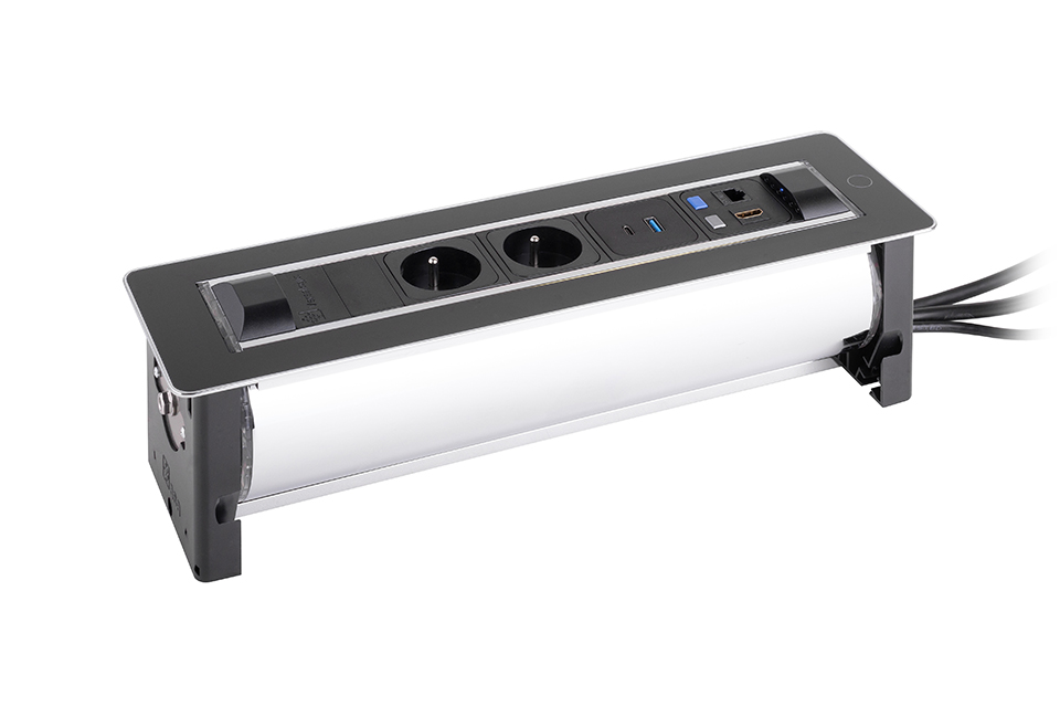 VersaTurn elektrická zásuvka 2x 230V FR, USB A/C, 1x RJ45, HDMI, černé sklo