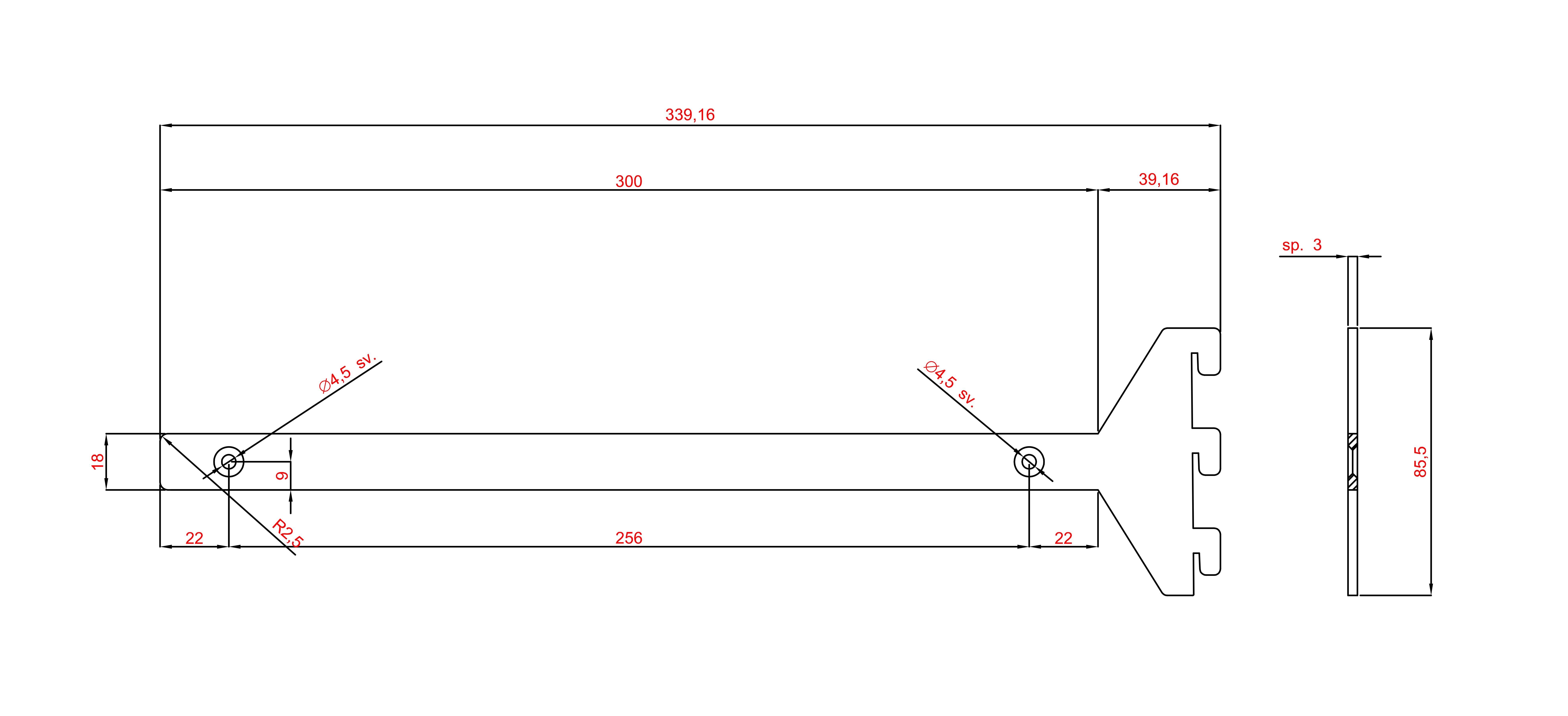 Držák polic 300x18