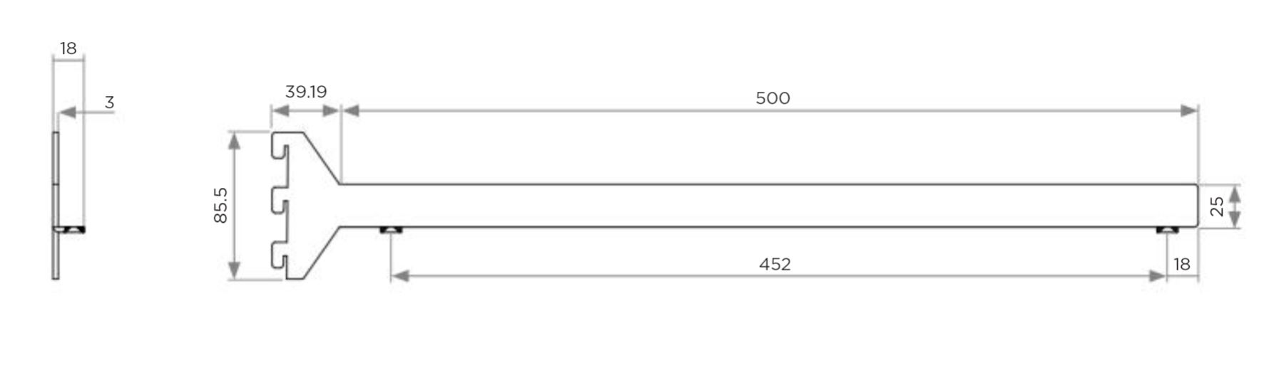 Držák police se spodní montáží levý (tloušťka police max 25mm), délka 500mm, barva tmavě hnědá.