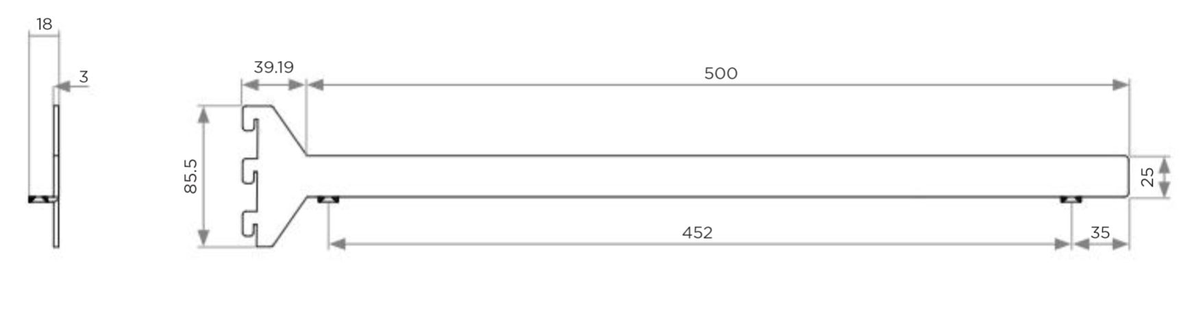 Držák police se spodní montáží praý (tloušťka police max 25mm), délka 500mm, barva tmavě hnědá.