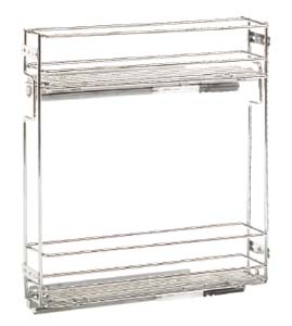 Drátěný koš se dvěma policemi pro skříňku 150mm s HPL bílým dnem. Boční plnovýsuv s dotlumením (Hettich) pro montáž na pravou stěnu korpusu. Rozměry: h473xv510xš107.
