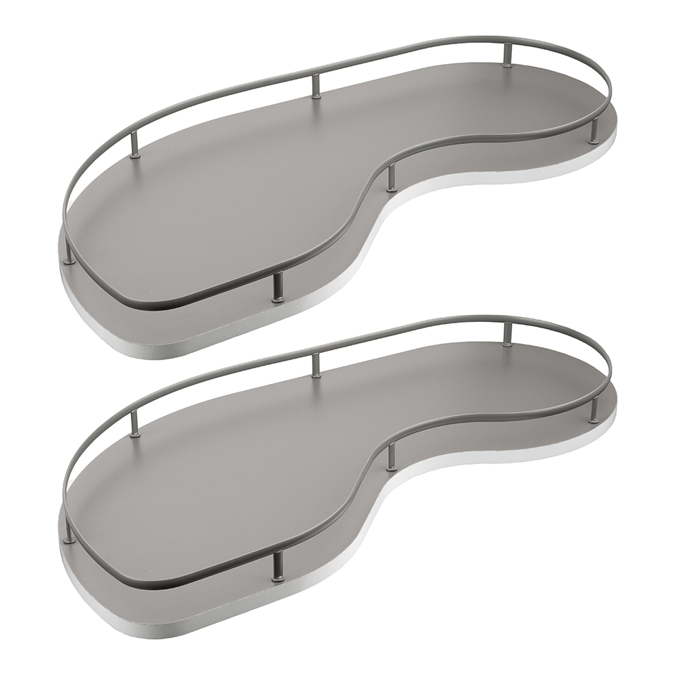 Sada dvou kusů polic pro rohový korpus, oválný drát s jedním relingem. Police mají prostiskluzovou úpravu. Určeno pro montáž vlevo. Nosná konstrukce 461729