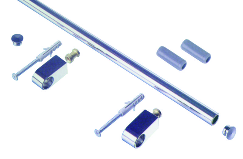 Délka: 600 mm. Sada zahrnuje relingovou tyč, 2 * držák tyče, 2 koncovky a fixační příslušenství