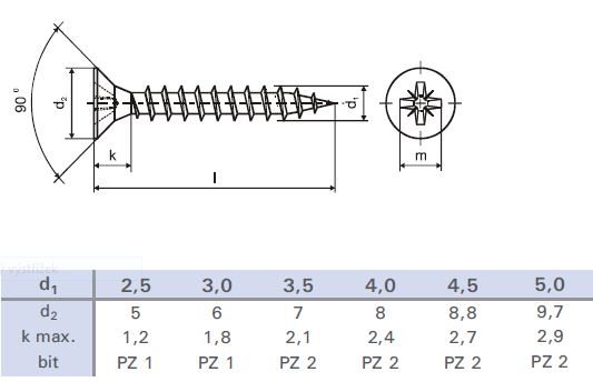 Vrut PZ 5x45 zápustná hlava zinek bílý PZ2