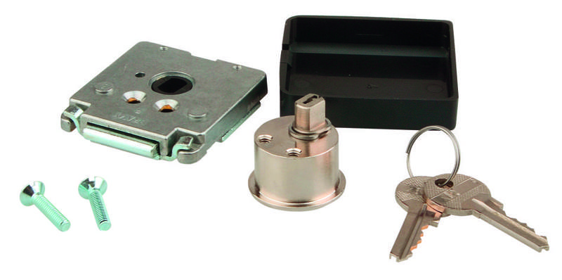 Kontejnerový zámek s fab vložkou a klíčem. Ilustrační foto- u niklové verze není zámek mosazný. Různé kombinace klíčů.