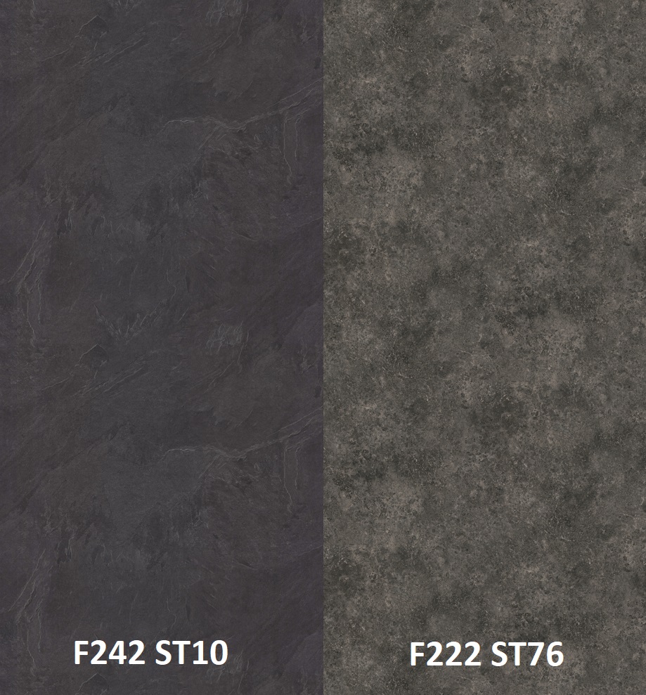 Zádové desky jsou dřevotřískové desky oboustranně potažené laminátem. Z každé strany mají jiný dekor.