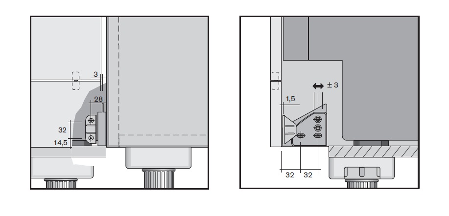 Vedení pro spodní sklopnou část čela u vestavné myčky. Použití u zvýšených korpusů kuchyňské linky. Zabraňuje kolizi dvířek myčky se soklem kuchyně. Použití při plánování v tzv. 6-ti rastru (viz. obrázek 6rastr) . Vedení se montuje na sousedící korpus. V balení pouze 1ks, na jedny dvířka nutno koupit 2ks. Nutno také doplnit o 2ks pantu "hrana-hrana" viz související sortiment.